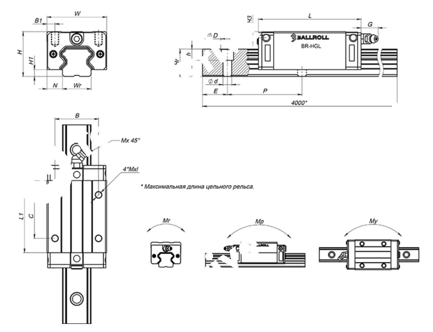 Прямоугольная низкая каретка стандартной длины BR-HGL15CA ZAH BALLROLL