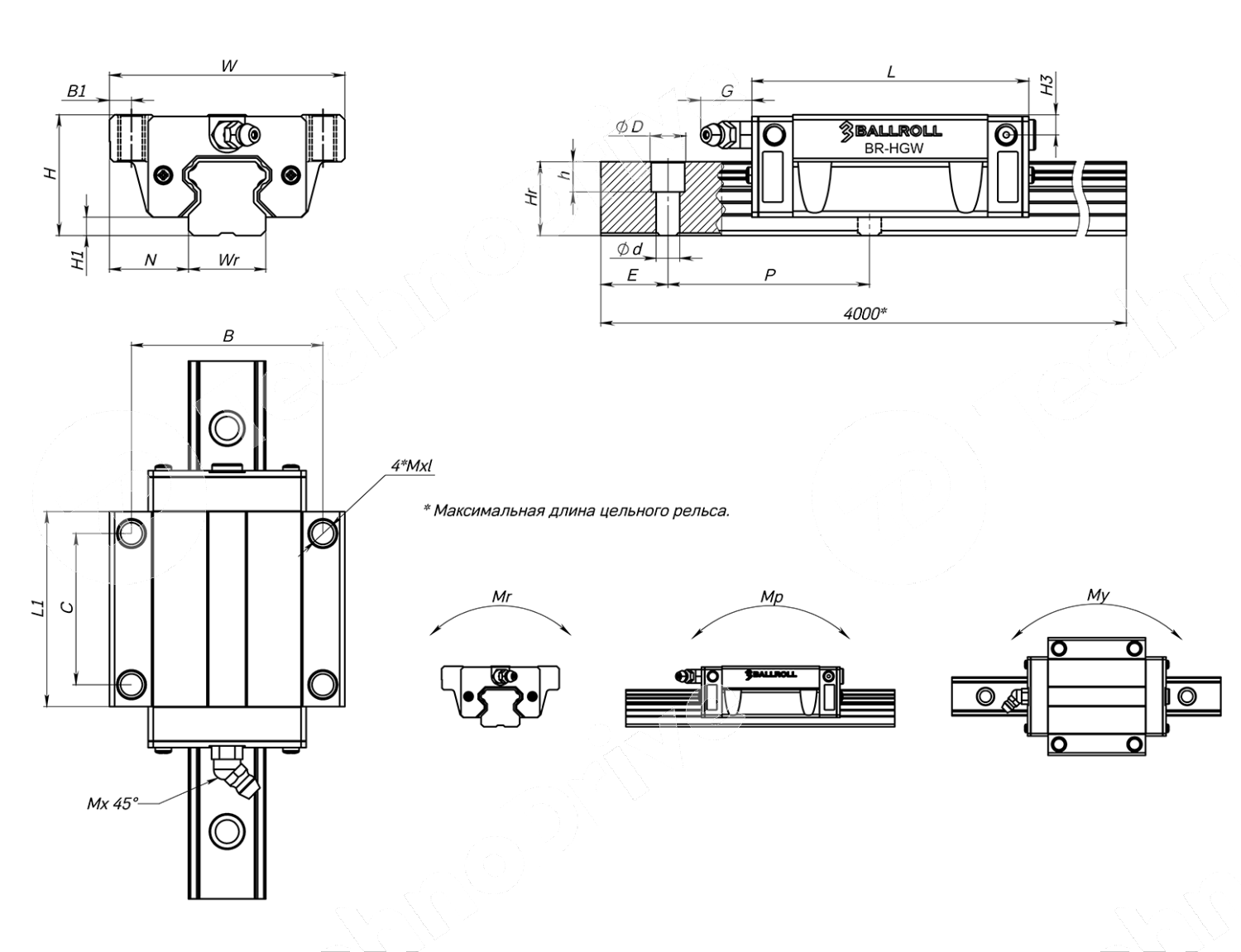 Фланцевая каретка удлиненная BR-HGW30HC ZAH BALLROLL