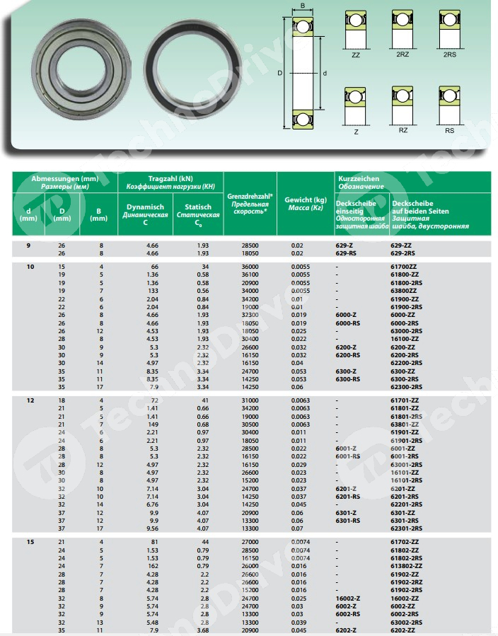 | Уплотнение (расшифровка) | ZZ (двусторонняя защитная металлическая шайба) |