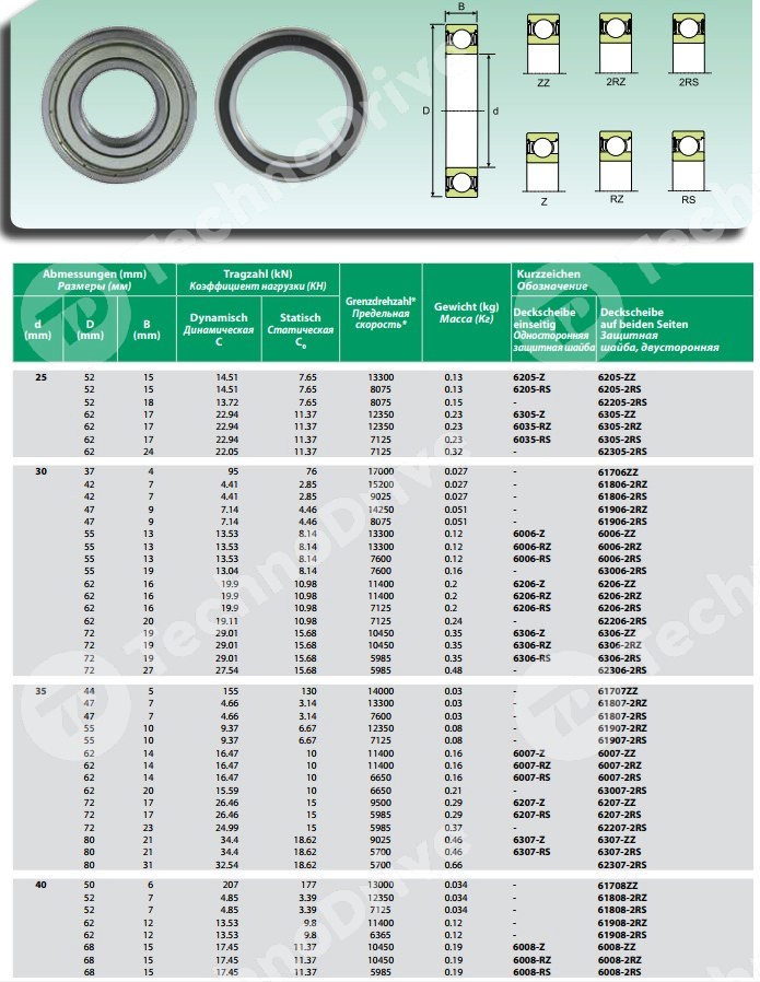 | Предельная скорость (жидкое масло), об/мин | 9000 |