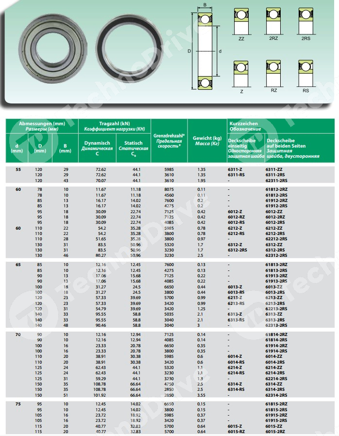 | Предельная скорость (жидкое масло), об/мин | 6120 |