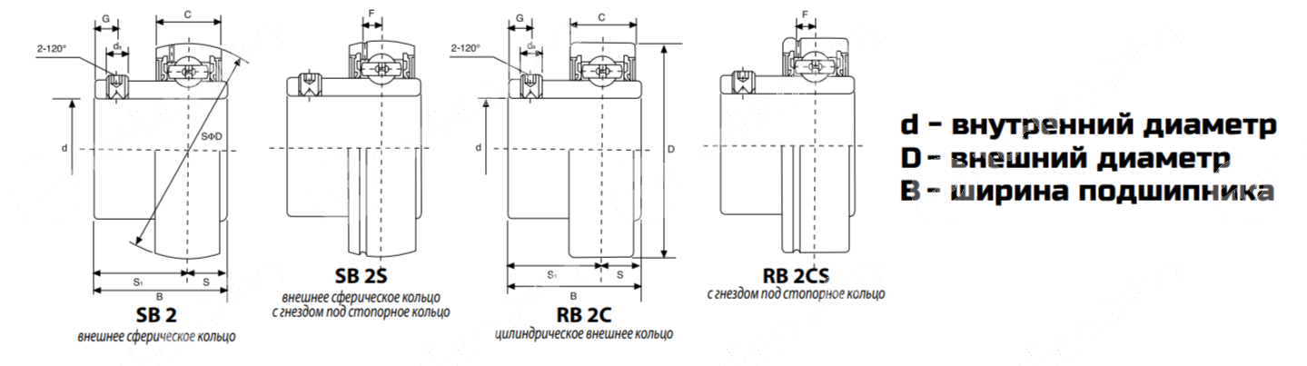 | Тип наружной обоймы | Сферическая |
