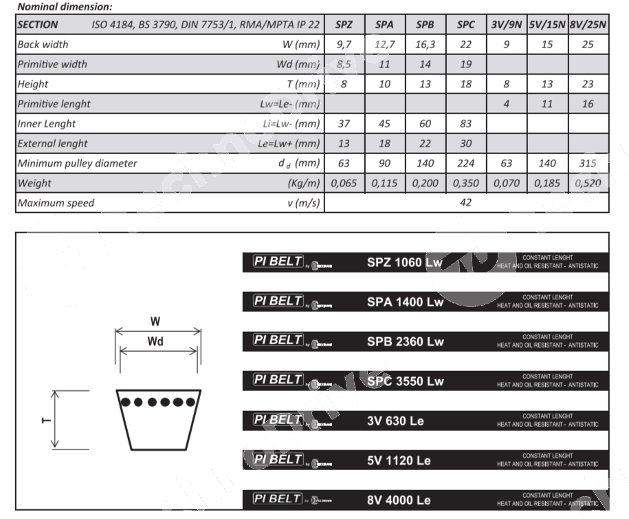 Ремень клиновой SPA 1250Lw PIZZIRANI