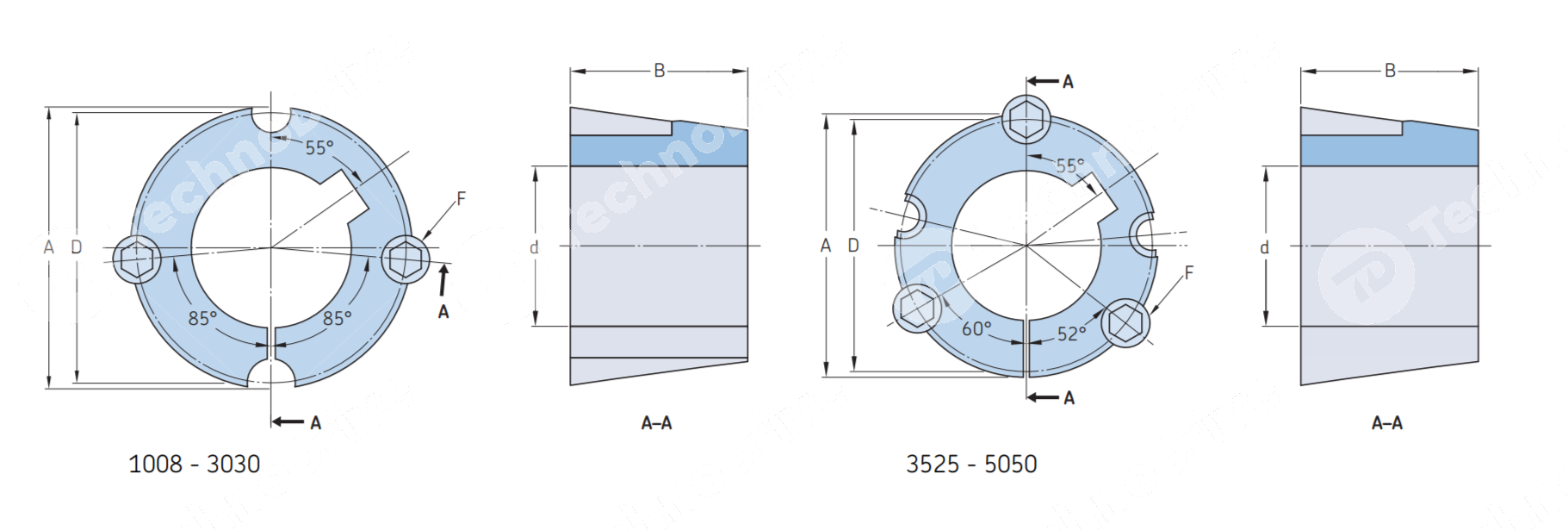 Тапербуш комплектуется двумя винтами, это обеспечивает дополнительную защиту от смещения детали во время работы. Для производства изделия используется чугун, что позволяет выдерживать передаточный момент до 147 Нм без деформации корпуса. Втулка подходит для установки на различные типы валов, сохраняя высокую точность позиционирования. Изделие изготовлено в соответствии с европейскими стандартами, что обеспечивает его долговечность и надежность в эксплуатации.